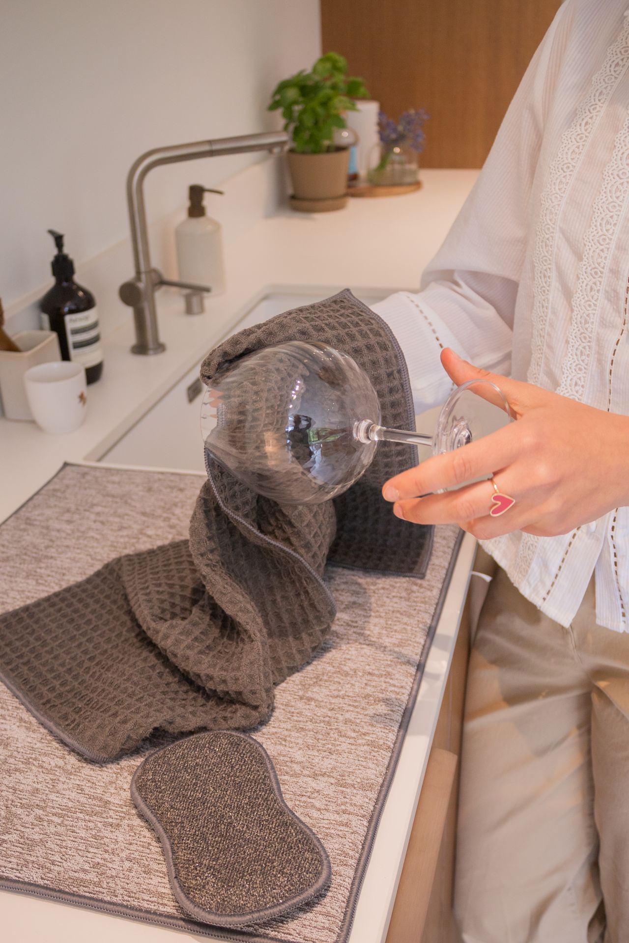 Séchez votre vaisselle plus rapidement avec ce torchon en microfibre aux tons naturels apaisants. Son grand motif gaufré assure une meilleure absorption de l’humidité et apporte une touche moderne à votre cuisine. Doux et résistant, ce torchon absorbe l’eau et sèche rapidement, prêt à être réutilisé. Facile à suspendre, il est idéal pour un usage quotidien en cuisine.