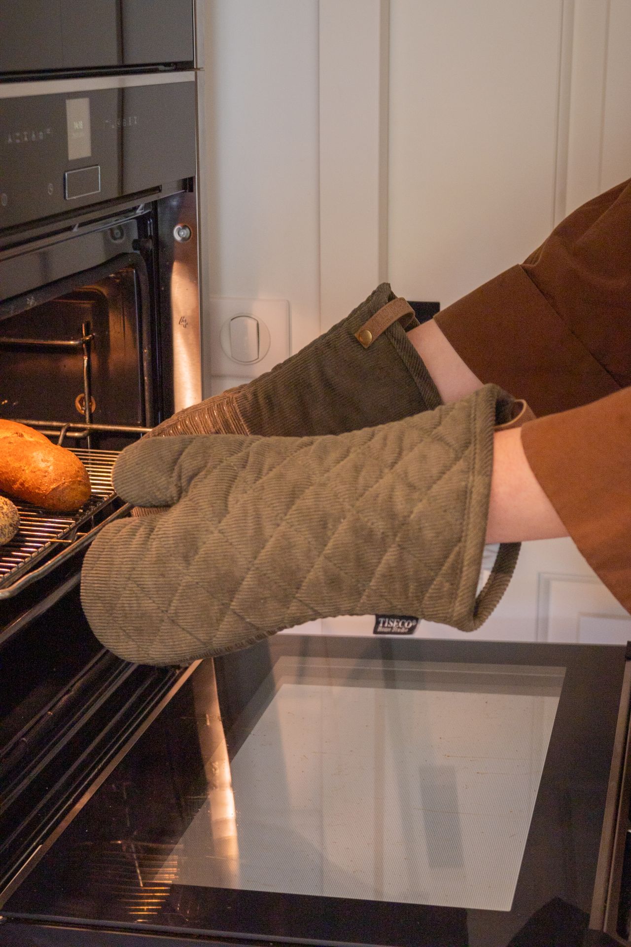 Manipulez vos ustensiles de cuisine chauds en toute sécurité et avec style grâce au lot de maniques VELMAR, confectionné en velours côtelé doux et résistant (80 % coton, 20 % polyester). Ce lot comprend une manique gauche et une manique droite, pour un ajustement parfait à chaque main. Orné d’un motif losanges matelassé pour un aspect matelassé raffiné, il est doté de bandes en silicone sur la paume pour une prise ferme et antidérapante, idéales pour soulever casseroles, poêles et plats à gratin chauds en toute confiance.