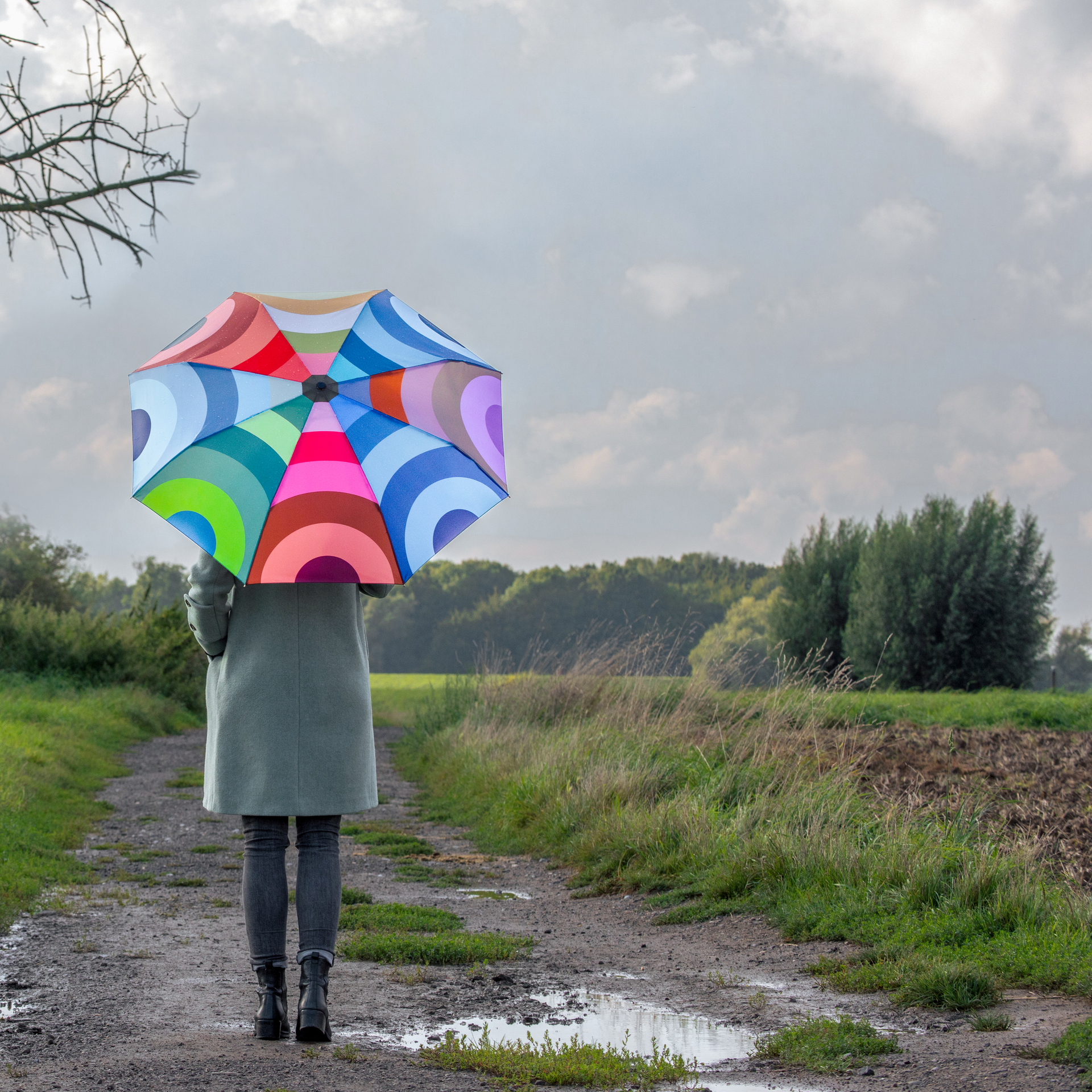 Ce parapluie de poche pratique et aux couleurs vives résiste à toutes les averses et se glisse dans tous les sacs à main. Il suffit d’appuyer sur un bouton pour que les couleurs vives mettent de bonne humeur – même par vrai temps de chien. Et une fois l’averse passée ? Il suffit d’appuyer sur le bouton, de replier le parapluie et il disparaît en un clin d’œil dans sa housse de protection aux couleurs assorties.