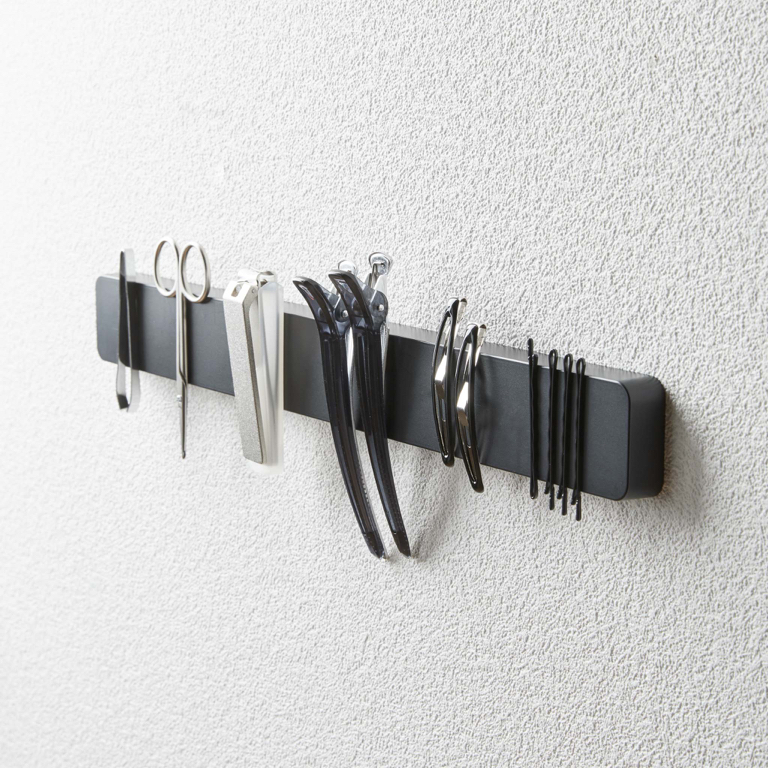 Ce porte-couteaux magnétique Yamazaki offre une solution de rangement peu encombrante pour les couteaux de cuisine et autres ustensiles ménagers. Il se fixe facilement grâce à sa fonction magnétique, à du ruban adhésif double-face ou aux vis fournies.