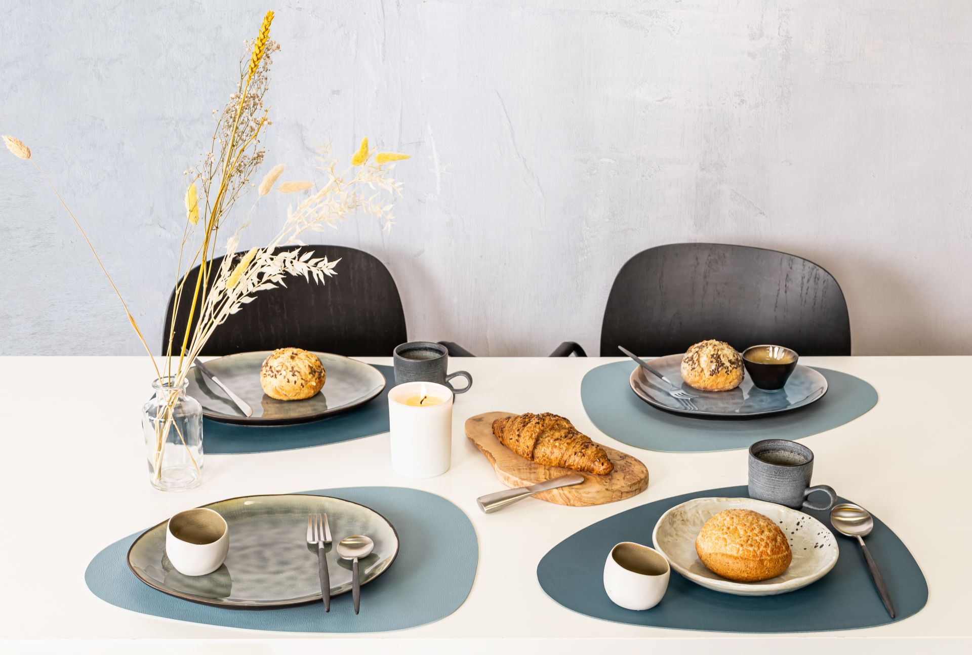 Le set de table TOGO allie une ambiance classique à une ambiance moderne. Le set de table mesure 43 x 32 cm et est composé à 100 % de cuir synthétique des deux côtés. Les sets de table sont décoratifs, faciles à entretenir et indéchirables, le complément parfait à votre table à manger !